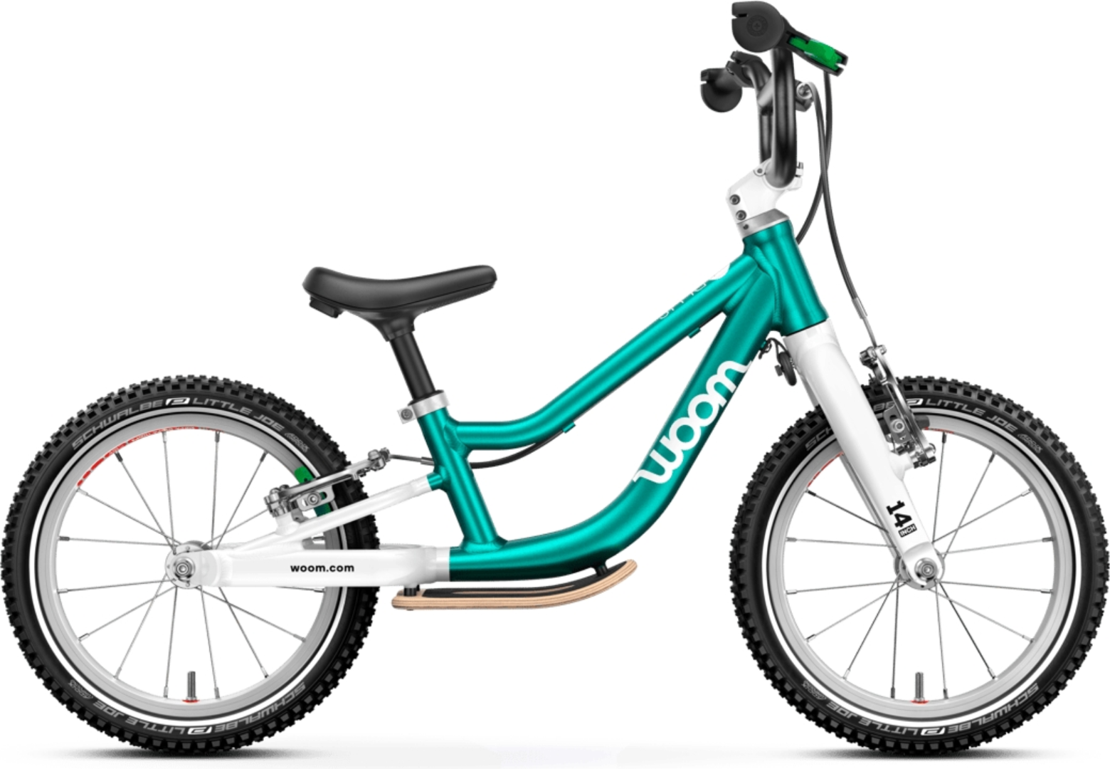 Beschreibung lang<p><b>Rahmen</b> leichtes, hochwertig verarbeitetes AA-6061-Aluminium, 14"-Laufradgröße, gutmütiges Fahrverhalten: extrem tiefer Einstieg, sehr niedrige Sitzposition, langer Radstand und fehlerverzeihende Lenkgeometrie sorgen für Stabilität sowie gute Balance und viel Fahrspaß</p><p><b>Laufrad</b> superleichte Felgen aus Aluminium, schmale, leichte Alu-Naben, besonders schmale Nabe am Hinterrad für extra viel Beinfreiheit, Ein- und Ausbau mit 5-mm-Innensechskantschlüssel, 16 leichte, extra robuste Niro-Speichen, gekreuzt eingespeicht</p><p><b>Reifen</b> 14 × 1,4" Schwalbe Little Joe, hochwertige, sehr leichte Reifen mit geringem Rollwiderstand für sicheren Halt und müheloses Vorankommen, Autoventile für einfaches Befüllen an jeder Tankstelle, reflektierende Streifen an den Flanken</p><p><b>Sattel</b> leicht bananenförmig für guten Halt, ergonomisch geformt, robustes, wasserfestes & witterungsbeständiges Material, texturierte Unterseite für angenehmes Tragen</p><p><b>Lenker</b> breiter, ergonomischer und leichter Lenker aus Aluminium für eine gute Kontrolle über das Rad, BMX-Style mit hohem Rise für maximale Verstellbarkeit, sandgestrahlt und schwarz anodisiert, besonders schmaler Durchmesser im Griffbereich, daher auch für sehr kleine Hände gut geeignet, Breite: 500 mm<p><b>Griffe</b> ergonomisch geformt, besonders schmaler, kindgerechter Durchmesser für guten Halt, Komfortzone für ein Plus an Fahrkomfort, Enden mit extra großem Durchmesser zum Schutz vor Verletzungen, Schraubgriffe mit integrierter Klemme zum Schutz vor Verdrehen</p><p><b>Bremsen </b>zwei unabhängig voneinander bedienbare Mini-V-Bremsen mit kindgerechtem Hebelverhältnis, ergonomisch geformte Bremshebel für kleine Kinderhände mit kurzen Fingern und geringer Handkraft, hochwertige Jagwire-Bowdenzüge für geringe Reibung und leichtgängige Funktion, Hinterradbremse: grüner Bremshebel, grüne Bremsbeläge</p><p>Alter: 3 - 4.5 Jahre - Körpergröße: 95 - 110 cm - Gewicht: 4,45kg</p>