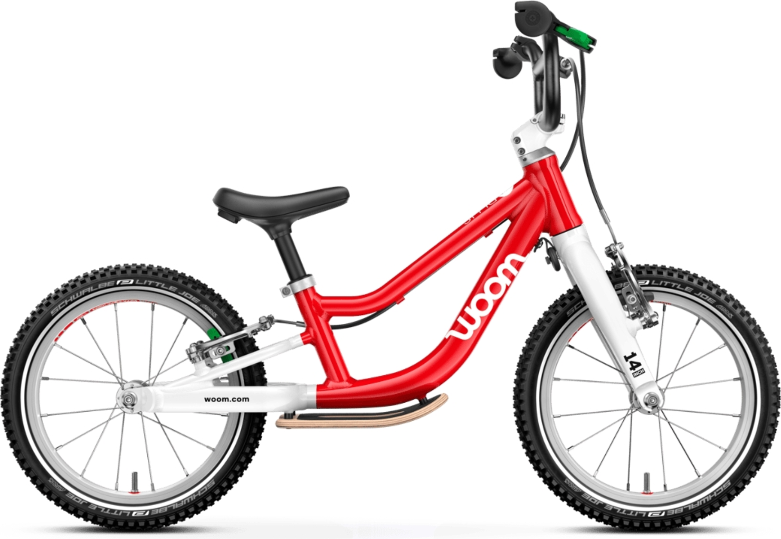Beschreibung lang<p><b>Rahmen</b> leichtes, hochwertig verarbeitetes AA-6061-Aluminium, 14"-Laufradgröße, gutmütiges Fahrverhalten: extrem tiefer Einstieg, sehr niedrige Sitzposition, langer Radstand und fehlerverzeihende Lenkgeometrie sorgen für Stabilität sowie gute Balance und viel Fahrspaß</p><p><b>Laufrad</b> superleichte Felgen aus Aluminium, schmale, leichte Alu-Naben, besonders schmale Nabe am Hinterrad für extra viel Beinfreiheit, Ein- und Ausbau mit 5-mm-Innensechskantschlüssel, 16 leichte, extra robuste Niro-Speichen, gekreuzt eingespeicht</p><p><b>Reifen</b> 14 × 1,4" Schwalbe Little Joe, hochwertige, sehr leichte Reifen mit geringem Rollwiderstand für sicheren Halt und müheloses Vorankommen, Autoventile für einfaches Befüllen an jeder Tankstelle, reflektierende Streifen an den Flanken</p><p><b>Sattel</b> leicht bananenförmig für guten Halt, ergonomisch geformt, robustes, wasserfestes & witterungsbeständiges Material, texturierte Unterseite für angenehmes Tragen</p><p><b>Lenker</b> breiter, ergonomischer und leichter Lenker aus Aluminium für eine gute Kontrolle über das Rad, BMX-Style mit hohem Rise für maximale Verstellbarkeit, sandgestrahlt und schwarz anodisiert, besonders schmaler Durchmesser im Griffbereich, daher auch für sehr kleine Hände gut geeignet, Breite: 500 mm<p><b>Griffe</b> ergonomisch geformt, besonders schmaler, kindgerechter Durchmesser für guten Halt, Komfortzone für ein Plus an Fahrkomfort, Enden mit extra großem Durchmesser zum Schutz vor Verletzungen, Schraubgriffe mit integrierter Klemme zum Schutz vor Verdrehen</p><p><b>Bremsen </b>zwei unabhängig voneinander bedienbare Mini-V-Bremsen mit kindgerechtem Hebelverhältnis, ergonomisch geformte Bremshebel für kleine Kinderhände mit kurzen Fingern und geringer Handkraft, hochwertige Jagwire-Bowdenzüge für geringe Reibung und leichtgängige Funktion, Hinterradbremse: grüner Bremshebel, grüne Bremsbeläge</p><p>Alter: 3 - 4.5 Jahre - Körpergröße: 95 - 110 cm - Gewicht: 4,45kg</p>